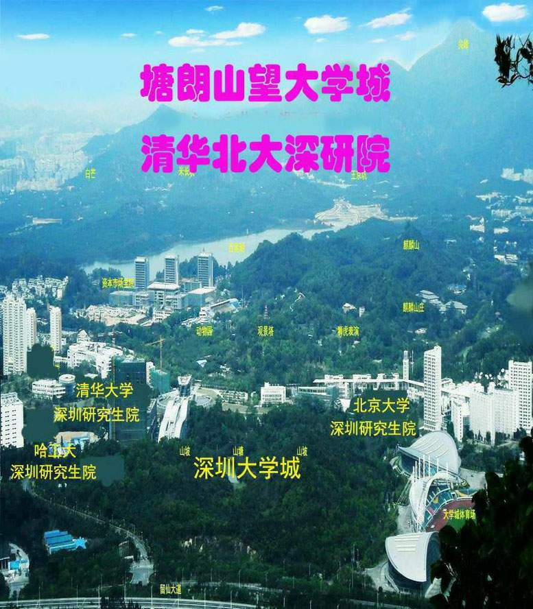 塘朗山望大学城,清华北大深研院。