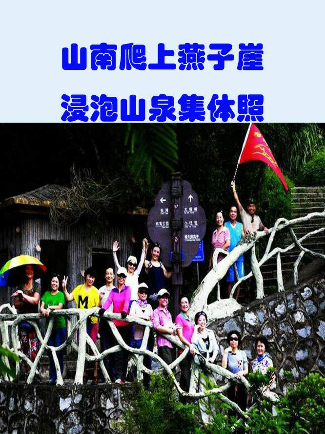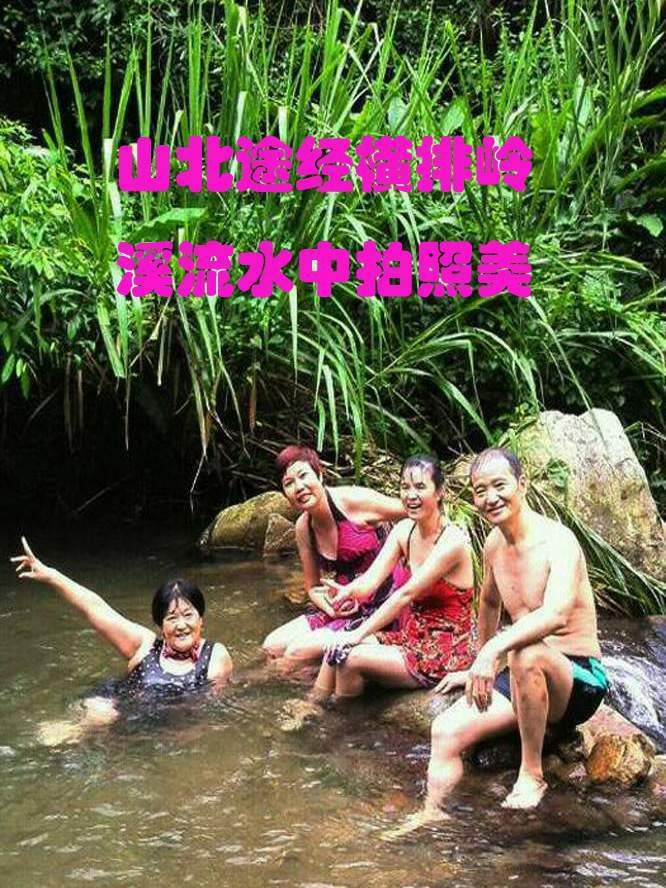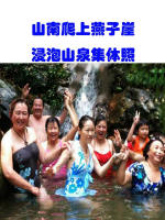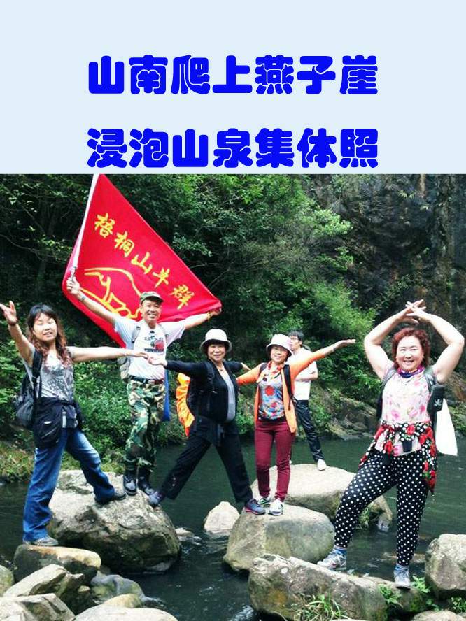山南爬上燕子崖,浸泡山泉集体照。