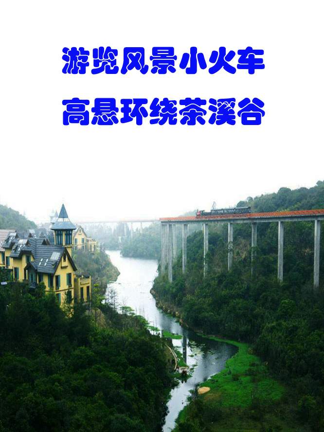 游览风景小火车,高悬环绕茶溪谷。