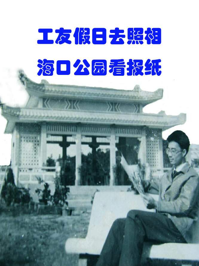 工友假日去照相,海口公园看报纸。