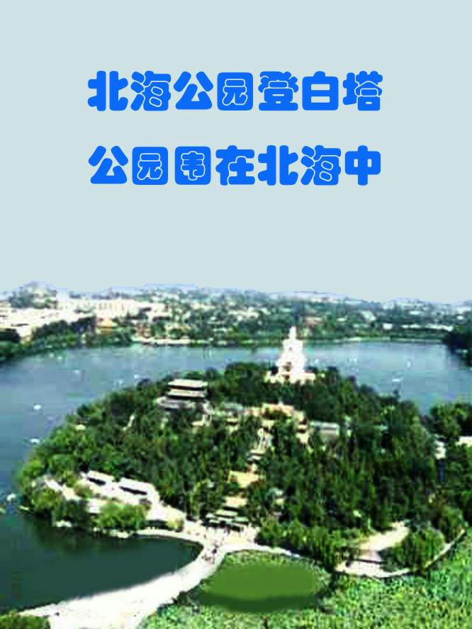 北海公园登白塔,公园围在北海中。