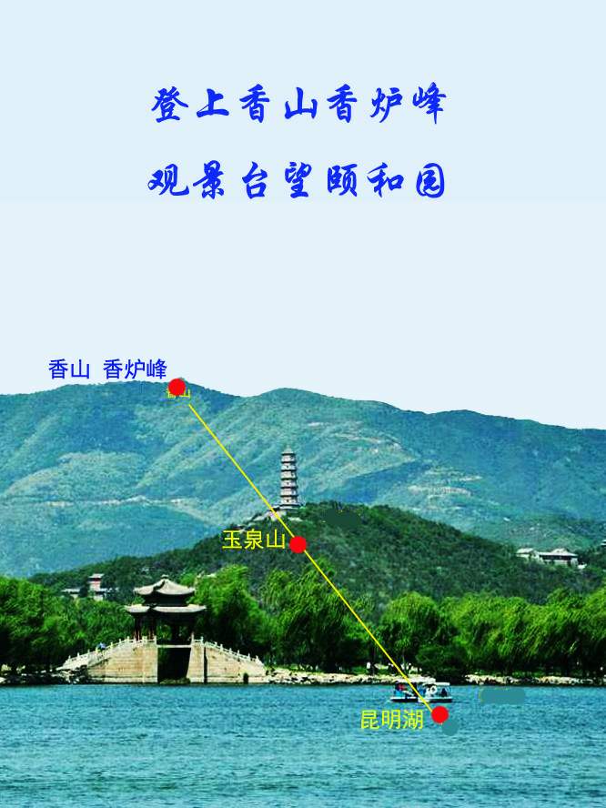 知春亭望佛香阁,昆明湖望万寿山。