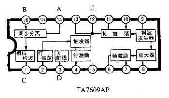 电视接收机扫描集成芯片TA7609AP内部方框图如下所示。