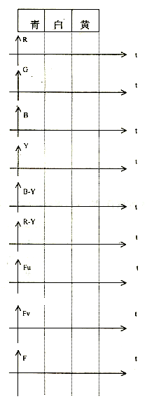 (1)画出此时相应的R、G、B、Y、B-Y、R-Y、Fu、Fv、F信号的电压波形,并标明其幅度值。