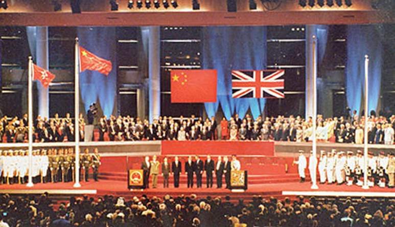 1997年7 月1日,香港回归祖国中英政权交接仪式。