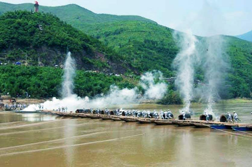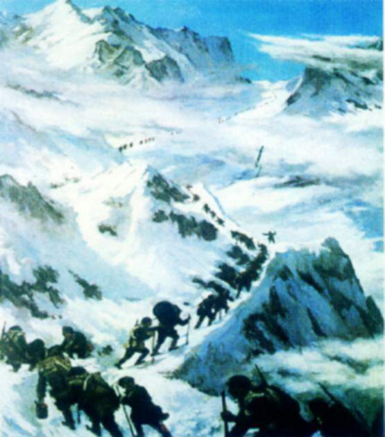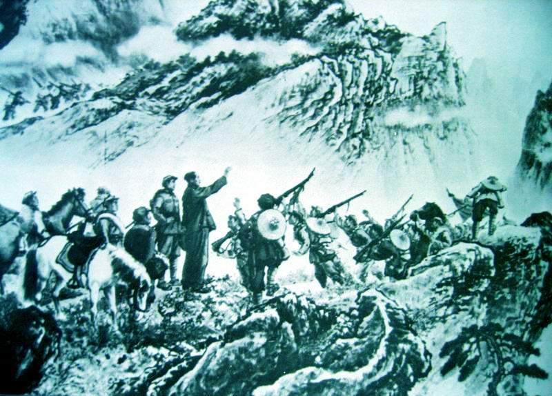 1935年5月,抢渡金沙江,顺利通过大凉山彝族区。抢渡大渡河,飞夺泸定桥,翻越终年积雪的夹金山。