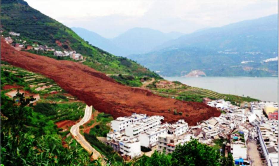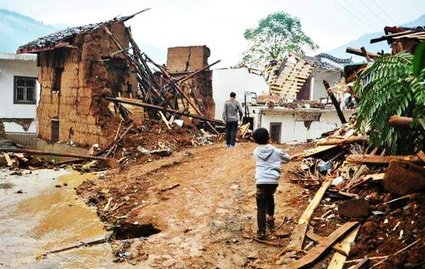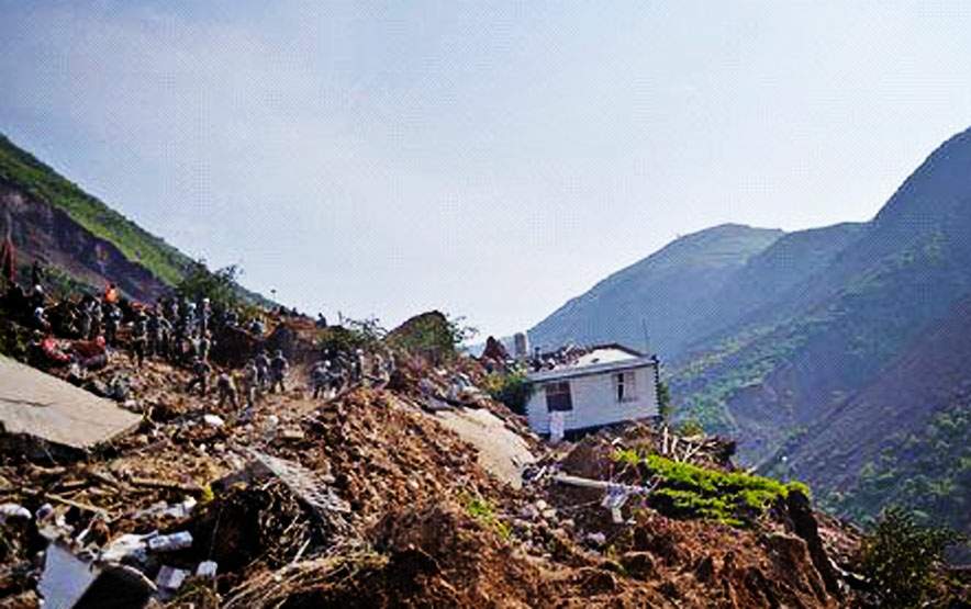 房屋倒塌,山路崩毁,大石挡路,造成人员重大伤亡和交通阻塞。
