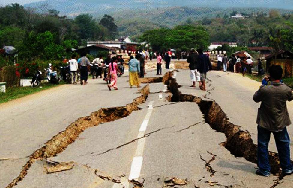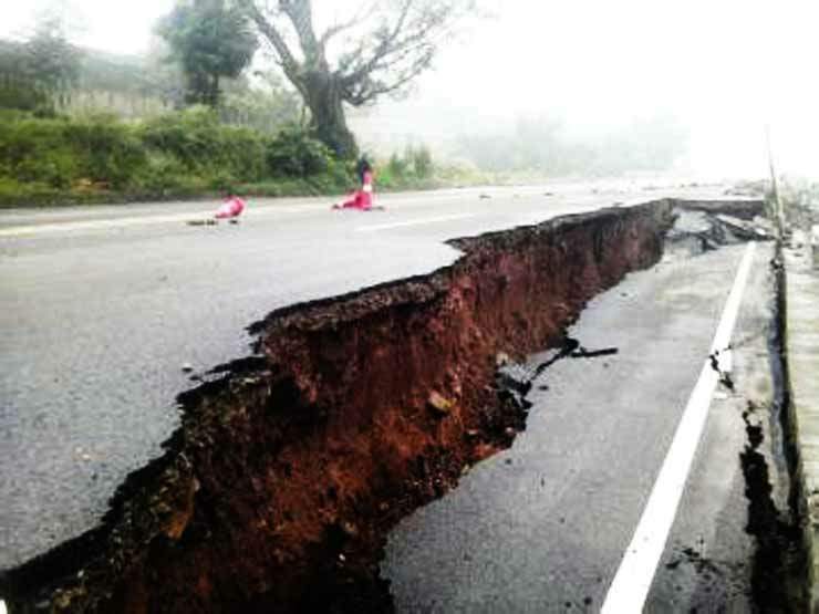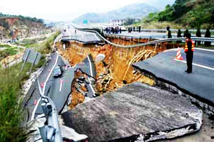 国内所见公路塌方开裂现象,在地震中有类似情景出现。